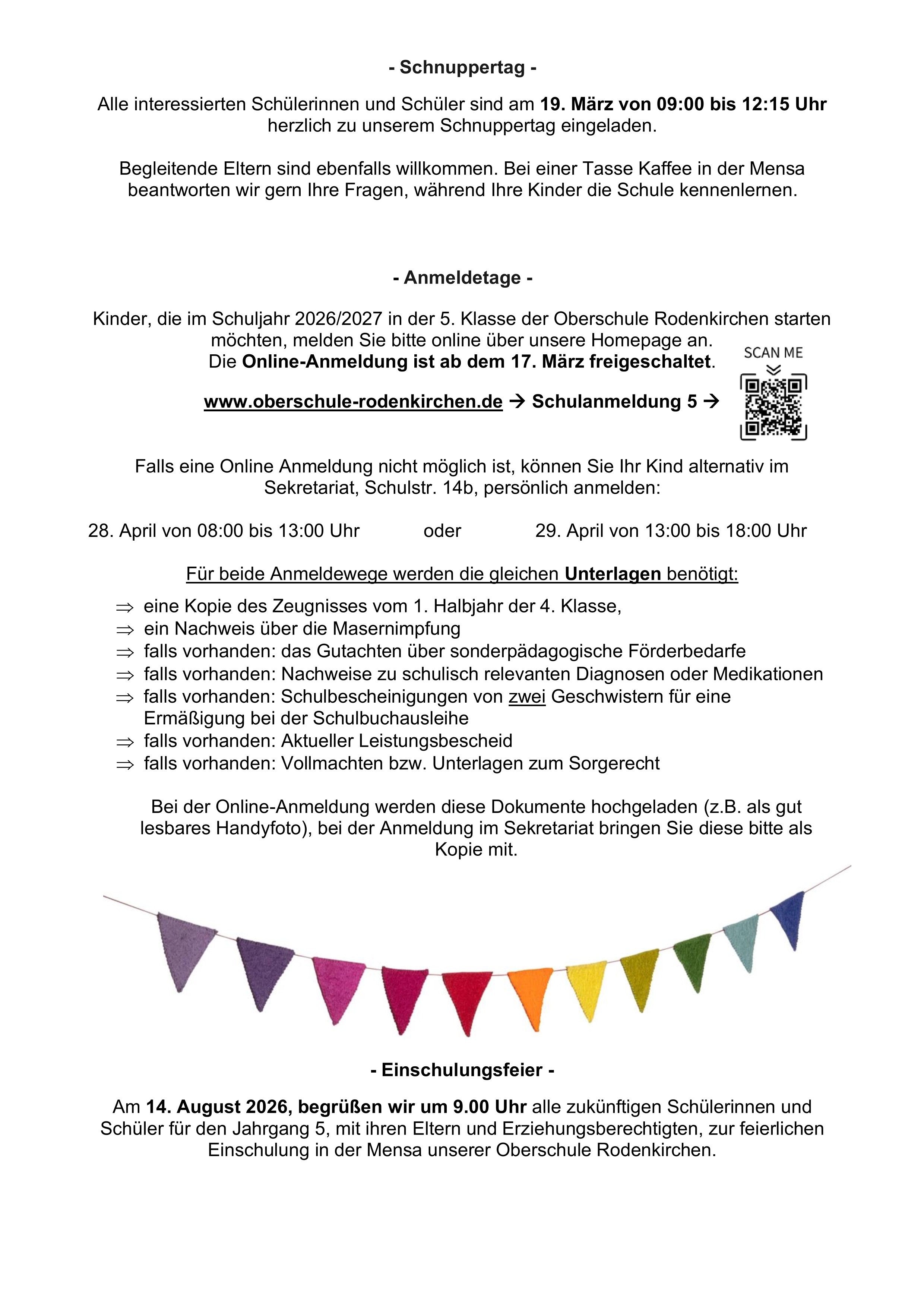 Online Anmeldung ist ab dem 17.03. geöffnet.